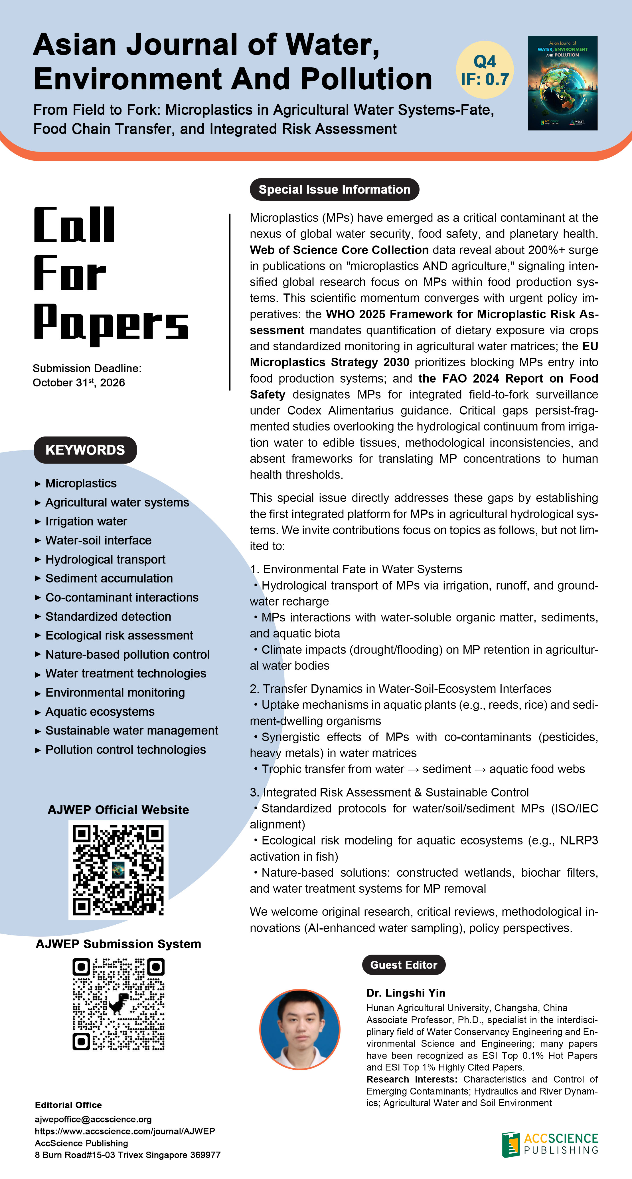 We welcome original research, critical reviews, methodological innovations (AI-enhanced water sampling), policy perspectives.