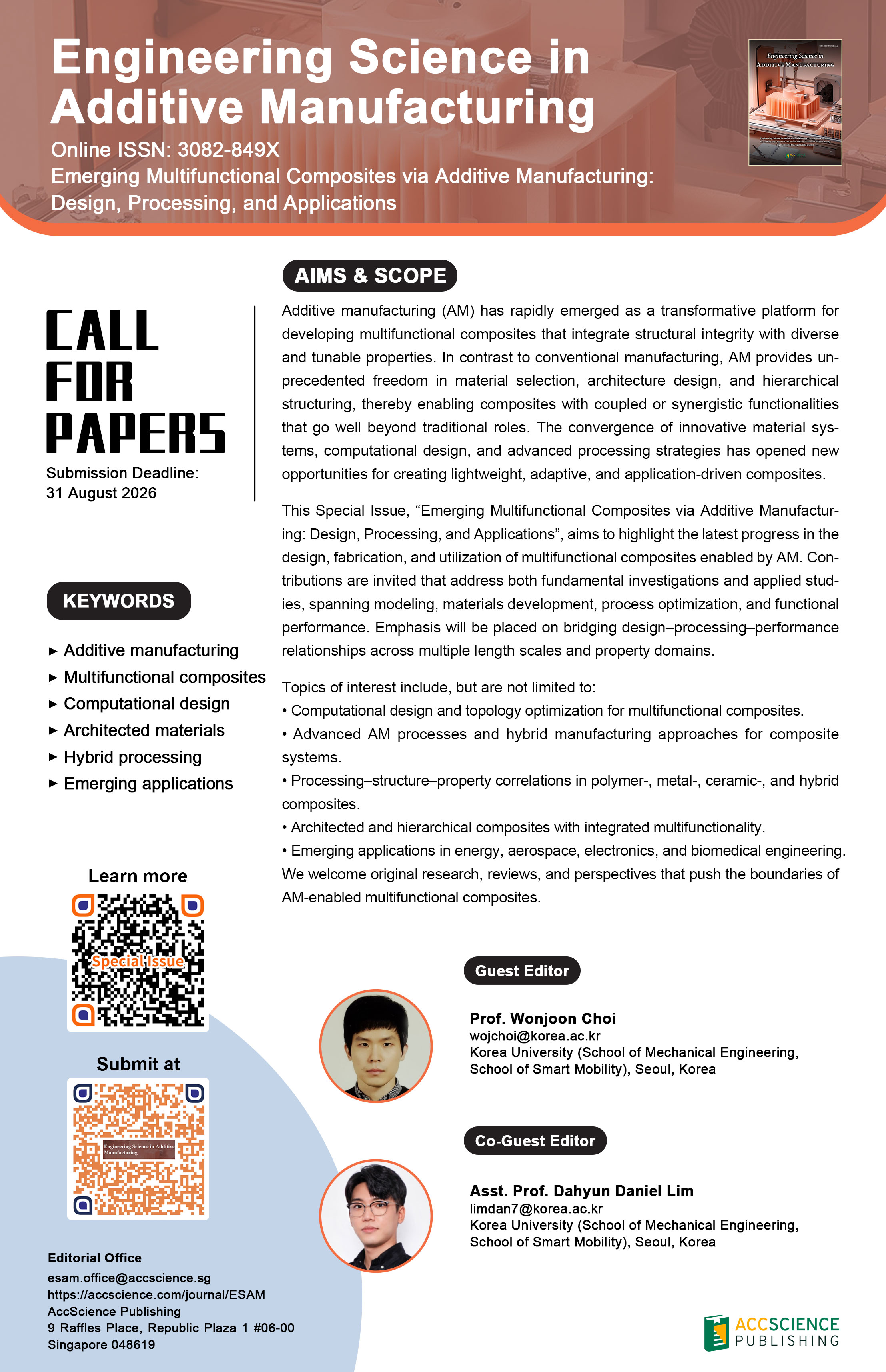 We welcome original research, reviews, and perspectives that push the boundaries of AM-enabled multifunctional composites.