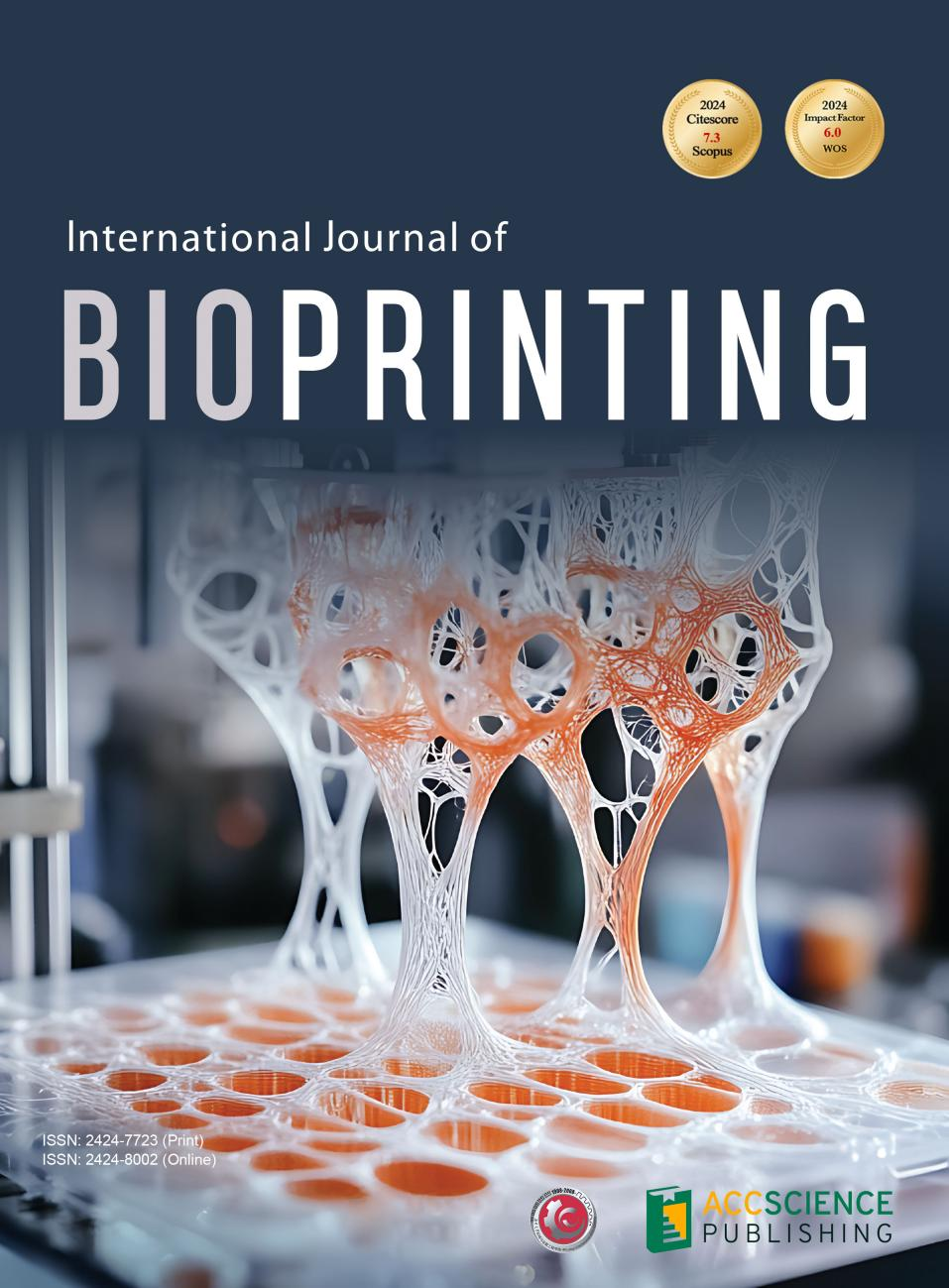 As of September 21, 2023, the International Journal of Bioprinting was transferred from Whioce Publishing (ijb.whioce.com) to AccScience Publishing, and will continue to be published by AccScience Publishing from Volume 9 Issue 6 (2023). Articles from Volume 1 Issue 1 (2015) to Volume 9 Issue 5 (2023) that were previously published by Whioce Publishing will be hosted by AccScience Publishing as a courtesy and upon the agreement with Whioce Publishing, with the original distribution license being applied. Please contact the Editor-in-Chief for information regarding the new publisher and any submissions in progress.