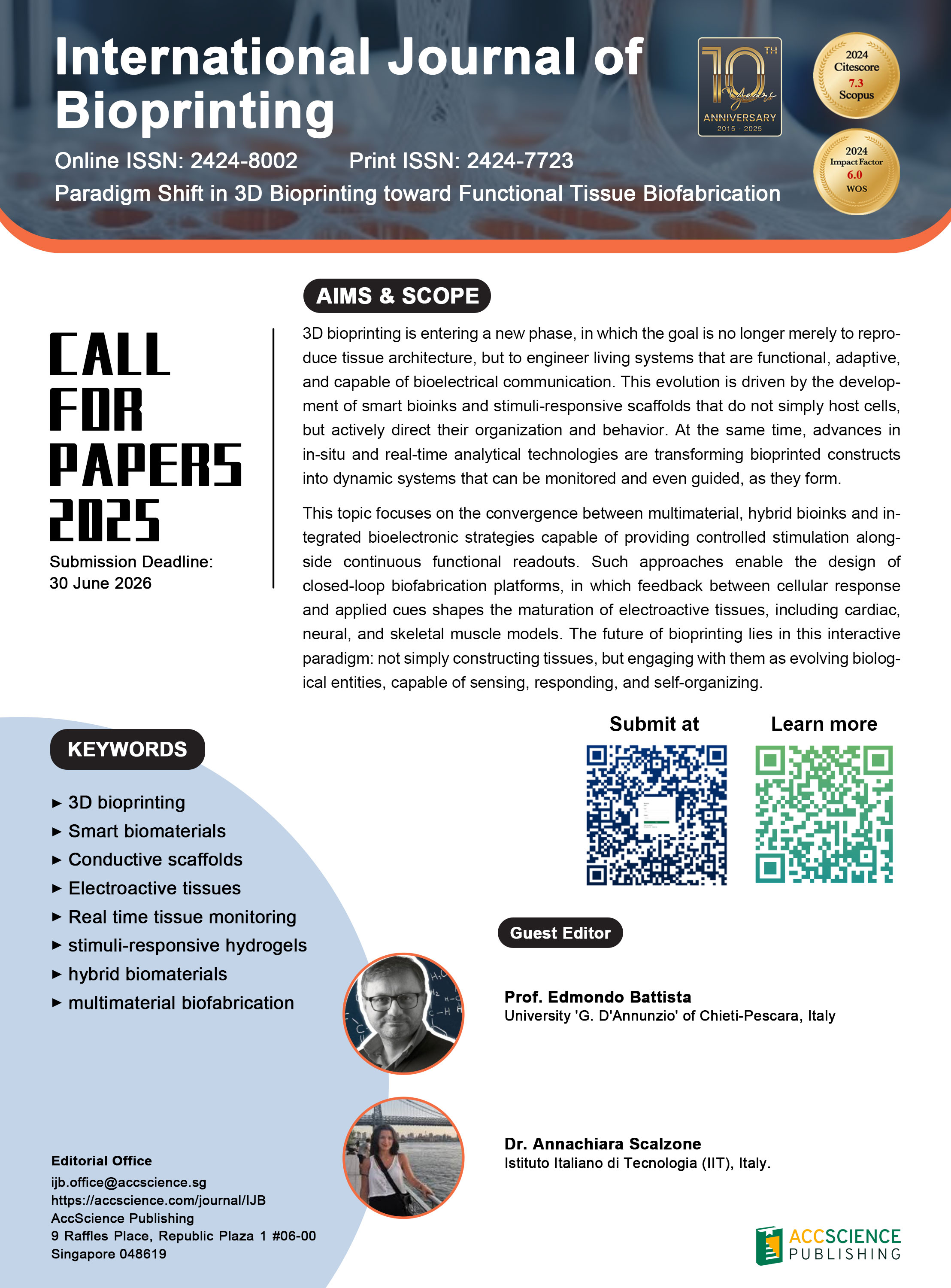 This topic focuses on the convergence between multimaterial, hybrid bioinks and integrated bioelectronic strategies capable of providing controlled stimulation alongside continuous functional readouts. Such approaches enable the design of closed-loop biofabrication platforms, in which feedback between cellular response and applied cues shapes the maturation of electroactive tissues, including cardiac, neural, and skeletal muscle models. The future of bioprinting lies in this interactive paradigm: not simply constructing tissues, but engaging with them as evolving biological entities, capable of sensing, responding, and self-organizing.