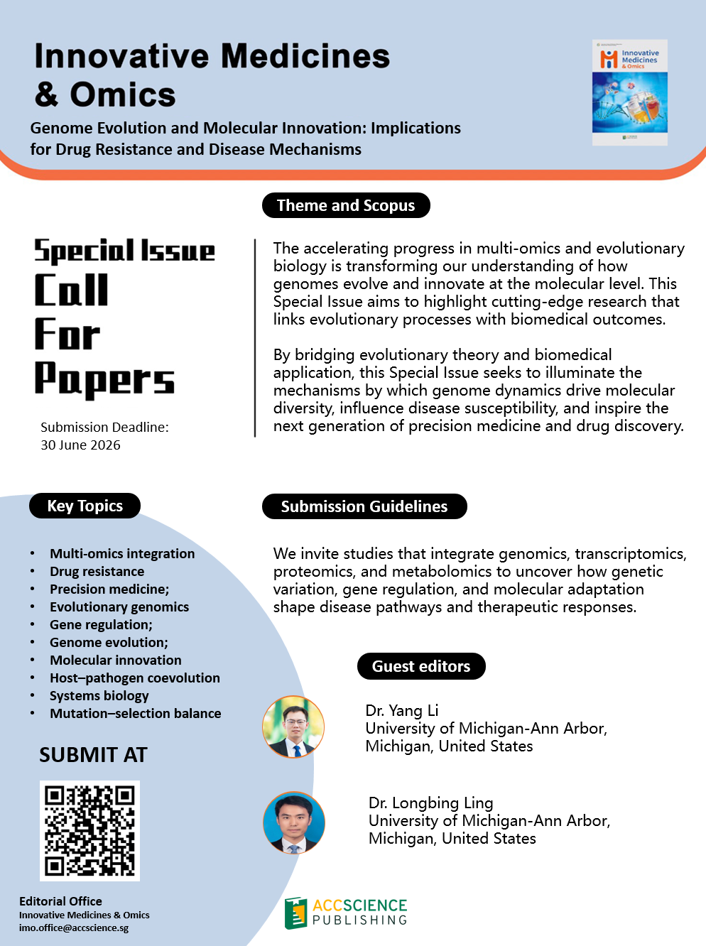 The accelerating progress in multi-omics and evolutionary biology is transforming our understanding of how genomes evolve and innovate at the molecular level. This Special Issue, Genome Evolution and Molecular Innovation: Implications for Drug Resistance and Disease Mechanisms, aims to highlight cutting-edge research that links evolutionary processes with biomedical outcomes. We invite studies that integrate genomics, transcriptomics, proteomics, and metabolomics to uncover how genetic variation, gene regulation, and molecular adaptation shape disease pathways and therapeutic responses. Topics of interest include, but are not limited to, the evolution of drug resistance, regulatory network rewiring, mutation–selection balance, convergent molecular innovations, and host–pathogen coevolution. By bridging evolutionary theory and biomedical application, this Special Issue seeks to illuminate the mechanisms by which genome dynamics drive molecular diversity, influence disease susceptibility, and inspire the next generation of precision medicine and drug discovery.