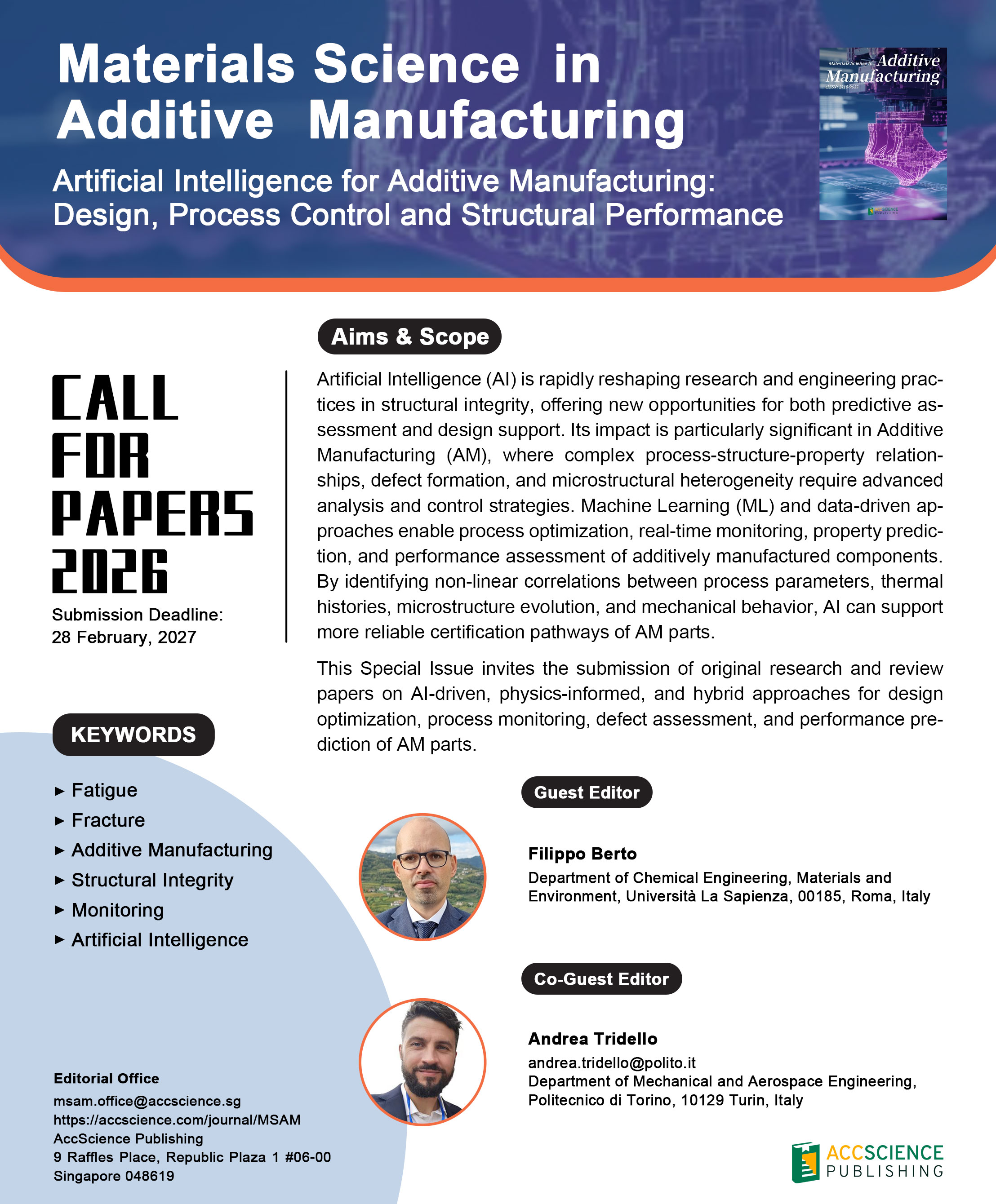 This Special Issue invites the submission of original research and review papers on AI-driven, physics-informed, and hybrid approaches for design optimization, process monitoring, defect assessment, and performance prediction of AM parts.