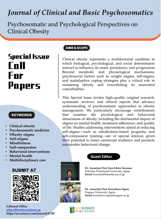 This Special Issue invites high-quality original research, systematic reviews, and clinical reports that advance understanding of psychosomatic approaches to obesity management. We particularly encourage contributions that examine the psychological and behavioral dimensions of obesity, including the detrimental impact of stigma on mental health, treatment adherence, and quality of life. Studies addressing interventions aimed at reducing self-stigma—such as mindfulness-based programs and self-compassion training—are of special interest, given their potential to foster emotional resilience and promote sustainable behavioral change.